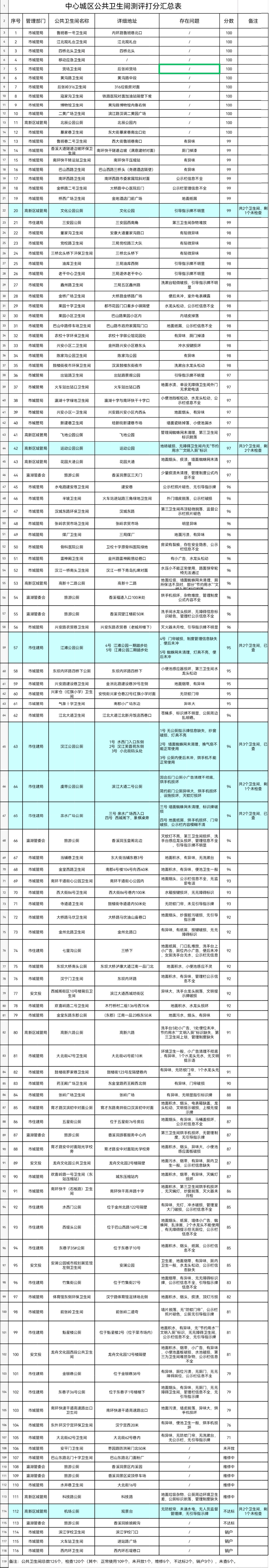 按照统一安排部署,市创文办日前对中心城区江北、江南片区以及高新区、香溪洞风景区等区域的120所公共卫生间进行了全面检查,现将检查情况通报如下: