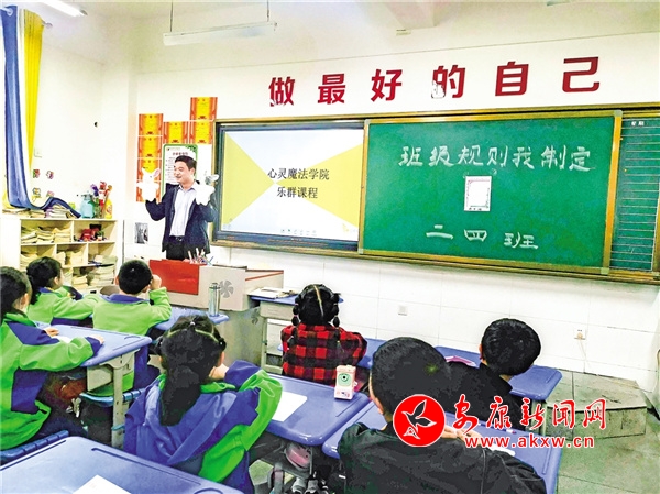 5月10日,汉阴县凤台小学班主任郭素婷老师拿着两只小兔子玩偶,在讲台上声情并茂讲着心理故事,台下的孩子们脸上挂着开心的笑容。这是凤台小学一节主题为《我的好朋友》的心理健康课程。