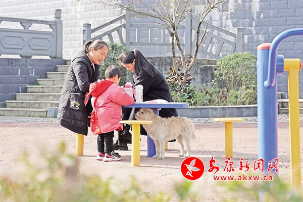 3月18日,大竹园镇粮茶村,群众在配套设施完善的集镇游玩。周濬 摄