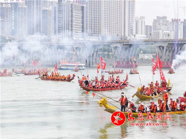 本网讯(记者 艾蓓 吴单 陈楚珺 )汉水起舞,龙腾盛世,平安顺利,幸福安康。6月22日上午9时整,一江两岸鼓角齐鸣,“中国红 红西凤”杯第二十三届中国·安康汉江龙舟节主题活动盛大启幕。