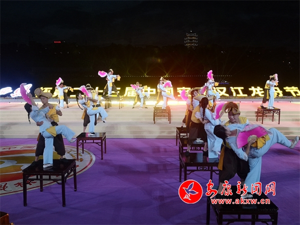 熠熠灯辉“靓”汉江,南北歌舞“响”安康。演出活动以绚丽夺目的灯光秀《华彩汉江》开场,汉江两岸五光十色的灯光随着音乐的节律不断变换、舞动,使一江两岸美轮美奂,《安安康康闹龙舟》通过“毛绒玩具”的亲切问候和载歌载舞,展现了安康新毛绒玩具产业蓬勃发展的动力和生机,具有地方特色的民族舞蹈《方寸之间》,将安康的传统艺术与时代特色紧密结合,舞出了了安康人民在新时代表现出的新风貌,原汁原味的陕南陕北民歌对唱,让粗狂和婉约在汉水之滨进行完美约会,歌舞、独唱、汉剧、杂技《南木有禾》《荷韵汉江》《节日欢歌》《魅力安康》《环之舞》《端午安康》等节目,以独特的唱腔、曼妙的舞姿和独特的技艺全方位的展现了汉水传统文化的魅力和安康人民的精神追求,热情激昂的歌舞《端午安康》演绎出了汉水儿女对聚力建设幸福安康的美好祝愿和对未来幸福美好生活的向往。