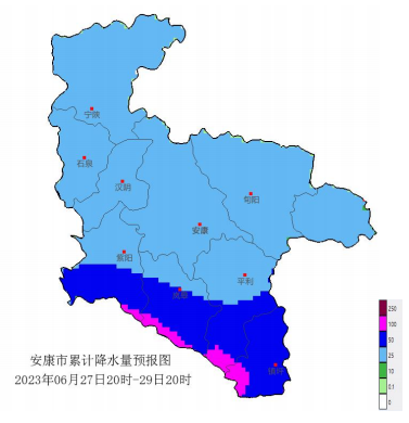 6月25日17时,安康市气象台发布《重要天气报告》,6月27日夜间至29日白天,我市有一次较强降雨天气过程。