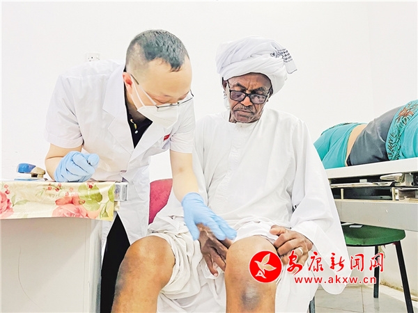 “我们的义诊地点虽然设在当地医院,但其诊室布置也只有2张检查床、3张桌子、数把椅子。条件虽然简陋,但当天还是针灸治疗了200余名患者。”李传根说,一位老年患者针灸治疗腰部之后,可能是觉得疼痛缓解非常明显,又要求为她治疗膝关节肩关节疼痛。这也是李传根在日常工作中经常碰到的情况,很多苏丹老百姓全身多个部位都有疾病,有了治疗机会,便会治好一处病痛还希望治疗另外一处。他们这样做,主要出于对医疗费用的考量和对中国医疗队的信任、对中医的认可。