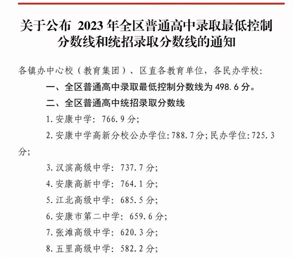 《关于公布2023年全区普通高中录取最低控制分数线和统招录取分数线的通知》