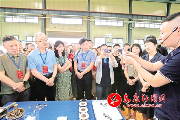 “这个材料的生产原料是什么?”“它能应用于哪些场景?”“韧性怎么样?”7月26日,在兰州高新区定连园区内的兰州市西脉记忆合金股份有限公司,参加“全国百家党媒社长总编看兰州”活动的嘉宾们站在一起,被讲解员手中形状各异的金属配件所吸引。在讲解员的测试下,原本长长延伸着的金属环在低温中瞬间缩成一团,前一秒还松动的卡扣立马就牢固起来……嘉宾惊奇于对眼前神秘的一幕。