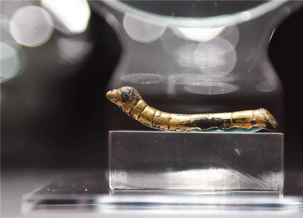 在火爆的陕西历史博物馆里,陈列着一个外形特别小,级别特别高的汉代文物——鎏金铜蚕。它是1984年,安康石泉县当地的农民偶然一次在河里淘金时发现的,经专家鉴定为汉代“鎏金铜蚕”,是西汉时皇帝对蚕桑生产的最高奖励。