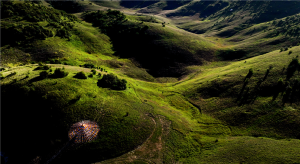 图片2023年7月15日,陕西安康,夕阳映照着巴山大草原斜坡。图/视觉中国