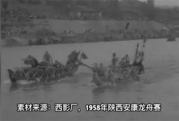 新中国成立后,安康龙舟竞渡的名气依然在线,西安电影制片厂建厂后拍摄的第一部电影《庆丰收赛龙舟》,“主角”就是安康赛龙舟,电影用纪实的手法,记录了1958 年端阳节安康城区举办龙舟赛的盛况,后来全国发行。