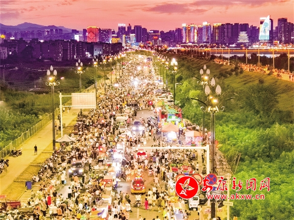 夕阳欲颓,夜幕未至之际,安康东坝汉江大桥下夜市的“烟火气”开始弥漫开来。