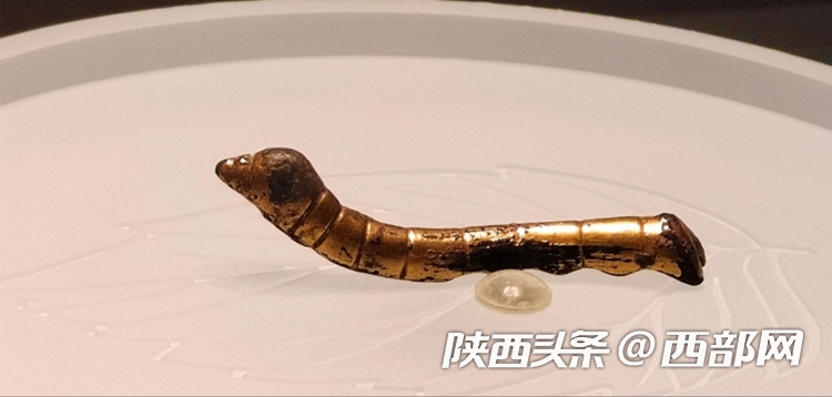 金灿灿华丽丽的蚕宝宝,一睡就是两千多年。这枚金灿灿的鎏金铜蚕虽小,却是汉朝鼓励发展蚕桑业的证据,也成为见证古丝绸之路历史的代表性文物。
