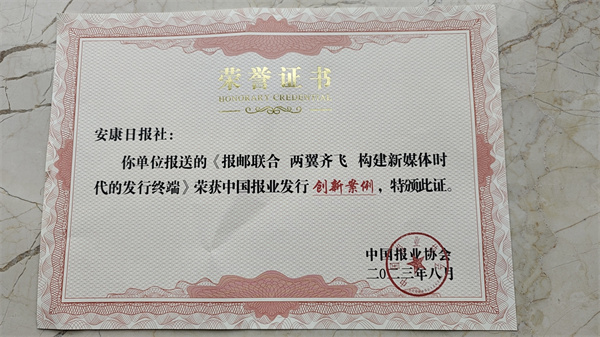本网讯 8月16日至19日,由中国报业协会、青海日报社指导,中国报业协会发行工作委员会、中国报业电商物流联盟主办的“中国报业发行暨电商大会”在青海西宁召开。安康日报社申报的《报邮联合 两翼齐飞 构建新媒体时代的发行终端》荣获“2023年度中国报业发行创新案例”奖。