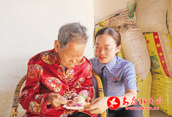 “李美林老人是检察院帮扶的茶园村第一位百岁老人,也是连续8年由检察干警结对帮扶的家庭,这不仅是老人自己的福气,也是检察院的福气,老人一直都生活在茶园村,她见证了村里的发展与变化,在党的惠农政策扶持下,她的孙子发展养蜂产业,年收入5万元。这次精心准备庆祝活动,是为了给李美林老人一个难忘却又特别的生日,并以贺寿为契机引导辖区村民继续发扬传统孝道,关爱老人健康,尊亲孝老。”该院驻村第一书记余世主说。
