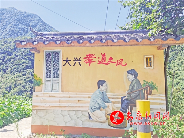 沿G541国道一路驶入南宫山镇,沿线的彩绘垃圾房掩映在农田屋舍之间,垃圾房上都画着以“大兴孝道之风”“重视子女教育”等新民风十条为主题的精美情景画,辅之以青瓦飞檐,犹如一处处景观小品融入南宫山脚下的连绵风景。