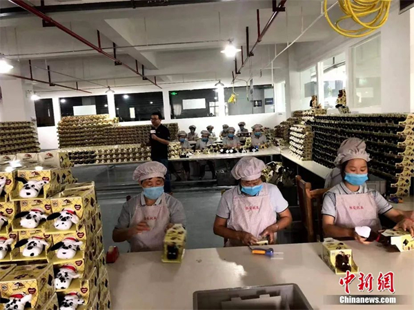 在工厂工作的工人中,女性占比较大。“本地女性以前在家带孩子、照顾老人,很少外出打工。如今,工厂开在社区里,做毛绒玩具可以满足她们就近就业,为家庭增加收入的需要。”李建梅说。“我们还对需要照顾孩子的‘宝妈’推出弹性工作制,‘宝妈’们可以自己协调时间来工作。”