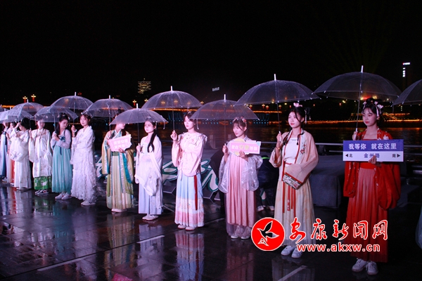 开场歌舞《安安康康送吉祥》将活动气氛点燃,活动发布,汉江夜游将实现以西城坊街区为起点,串联西城阁、汉江大剧院、汉江四桥、移民博物馆、安澜楼、龙舟文化园、安康博物馆、汉江一桥等核心地标,项目体验时长约40分钟、全线5公里。为配合夜游项目,策划了美食、演艺、文创市集、茶艺体验、网红直播打卡、水上运动等6大板块,同时,设置了汉服体验、毛绒玩具娃娃机等项目,为广大游客打造沉浸式游玩新感受。