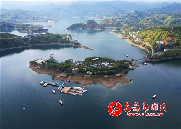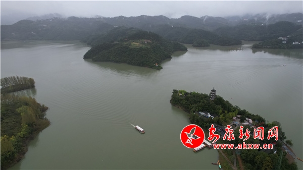 岛上杏花春雨,曲径通幽,朝着浓芳翠处盘折。我们一路彳亍,像水鸭子走旱路,东张西望。经过春雨的洗礼,绿色的枝叶青翠欲滴,干净得惹人怜爱。鸟儿慵懒地停在枝头,时而只低低划过眼前,我们全不理会,贪婪地呼吸着最清新的空气,浓郁芳香的泥土和水雾,沁人心脾。岛边湖水不断泛起的涟漪,缓缓泛起,静静地散去。湖波的荡漾声,就像恋人们喁喁情话,轻微的无法听着。湖上白鹭蹁跹,飞旋荡漾,悠然自鸣;湖岸果园葱郁、茶园飘香;远处巴山叠嶂,隐现于云烟树丛,声色俱佳,赏心悦目。“湖光写出千峰秀,天影写出十里秋”的古诗,犹可从这水晶世界读出。青山绿水和清新空气已成为都市追求的主题。这潋滟的湖光,迷蒙的细雨,乳白色的烟云,就像沁人肺腑的甘露。有谁不被这精彩画面所吸引?有谁不在这天然氧吧里流连忘返?也怪不得远近骚人墨客选此作创作基地,中外游子迷此作疗养胜地。