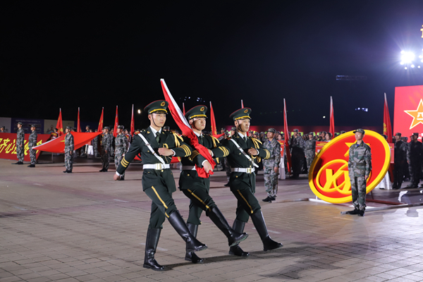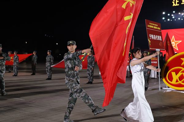 入场仪式完毕,全场起立,面向国旗,共同高唱国歌。伴随着高亢雄壮的国歌声,五星红旗冉冉升起。在国旗下,全体退役军人高举右拳庄严宣誓,表达了退伍军人坚定不移听党话、跟党走的决心和意志。