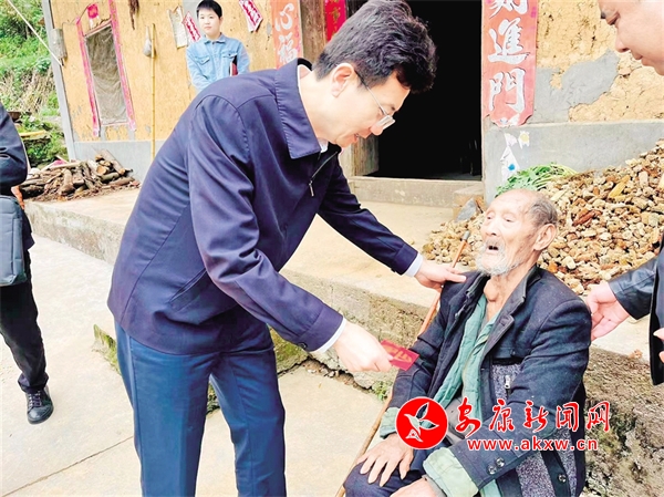 市民政局前往汉滨区双龙镇21组慰问百岁老人。刘益波 摄