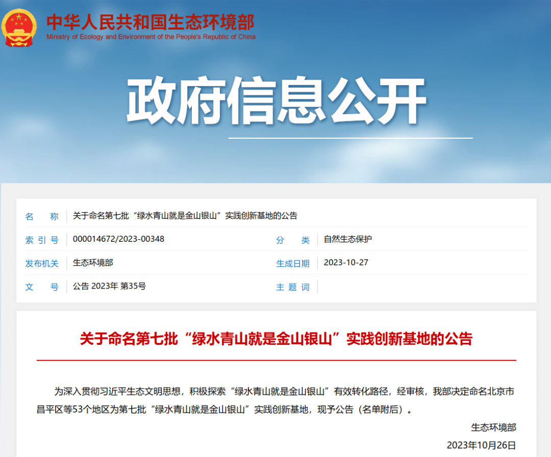 同日,生态环境部发布关于命名第七批“绿水青山就是金山银山”实践创新基地的公告,石泉县被评为第七批“绿水青山就是金山银山”实践创新基地。