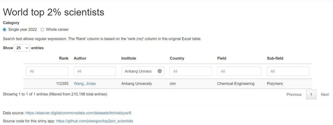 近日,美国斯坦福大学与Elsevier联合发布2023年度“全球前2%顶尖科学家榜单”(包括终身科学影响力排行榜和2022年度科学影响力排行榜)。安康学院科创驿站驻站博士王锦涛教授入选了“2022年度科学影响力排行榜”。