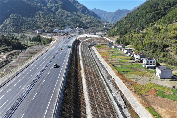 巫镇高速公路三标段施工现场(11月1日摄,无人机照片)。新华社记者 邵瑞 摄