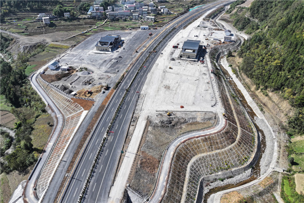 巫镇高速公路白鹿服务区施工现场(11月1日摄,无人机照片)。新华社记者 邵瑞 摄