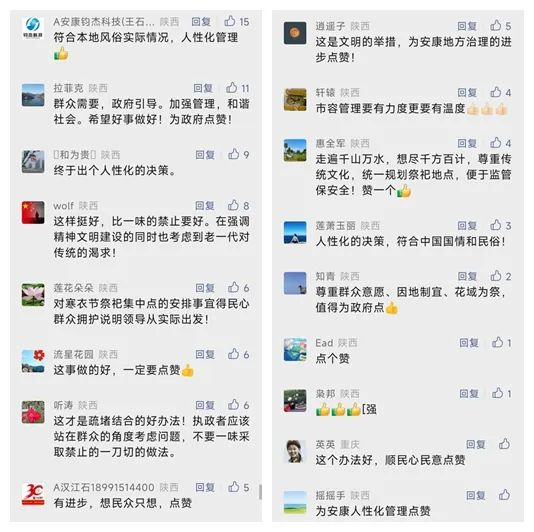 从前期“需要十几万元的祭祀场地费用”,到“几乎不花钱”地设置临时集中祭祀点位,既满足了群众祭祀需求,又维护了城市环境卫生和文明形象,还赢得了广泛赞誉和民心。“人性化的管理”“暖民心顺民意”“城市管理有温度”……在微信公众号留言区、抖音评论区,市民对此举高度认可,好评一片,反响强烈,也为今后祭祀节点在中心城区能够形成文明祭祀之风开了一个好头。