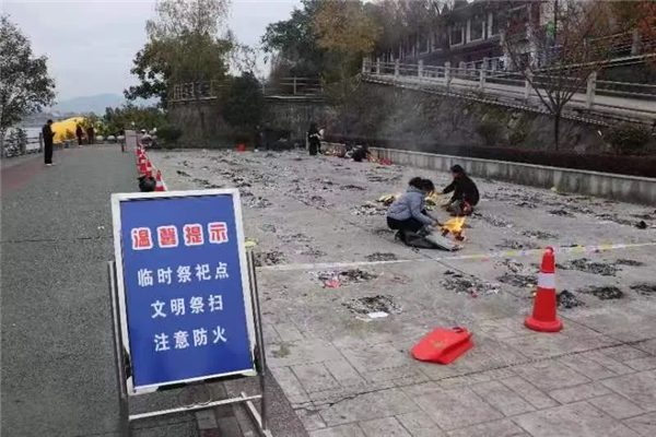 提供便利服务。各辖区在临时集中祭祀点安排了志愿服务人员,设置了祭祀场地简易围挡和点位提示,为市民提供祭祀需用的粉笔、火柴、石灰等,以及灭火器、灭火毯等防火安全设施,方便市民进行祭祀活动。安排专人负责清理祭祀现场,确保来人都能有空间祭祀,同时保持环境整洁。“老家是河西镇汪台村的,回去远不方便,在这儿给老先人送点纸钱,尽个心意。”来自长兴小区的汪军说,政府考虑的真周到。
