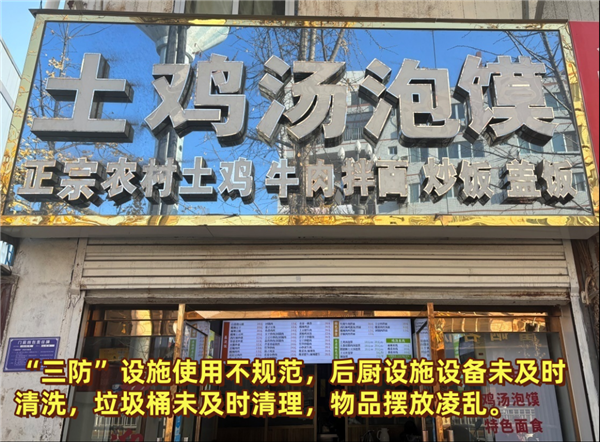 店内环境杂乱,后厨有卫生死角,无“三防”设施。