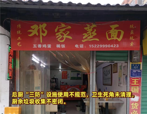 后厨“三防”设施使用不规范,卫生死角未清理,厨余垃圾收集不密闭。