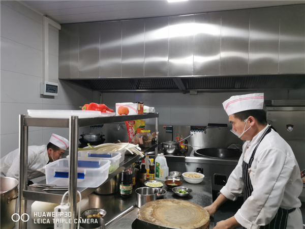 后厨卫生整洁,从业人员着装规范。