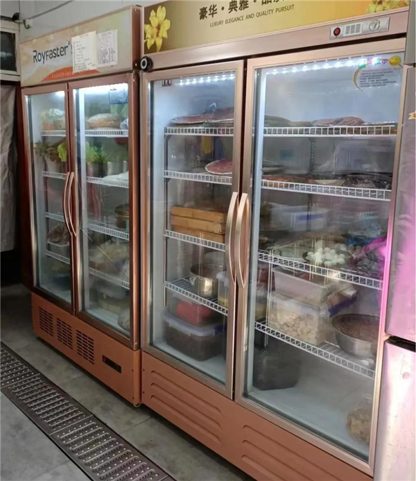 就餐区和后厨干净整洁,操作区摆放有序,冰箱内菜品按要求存放。