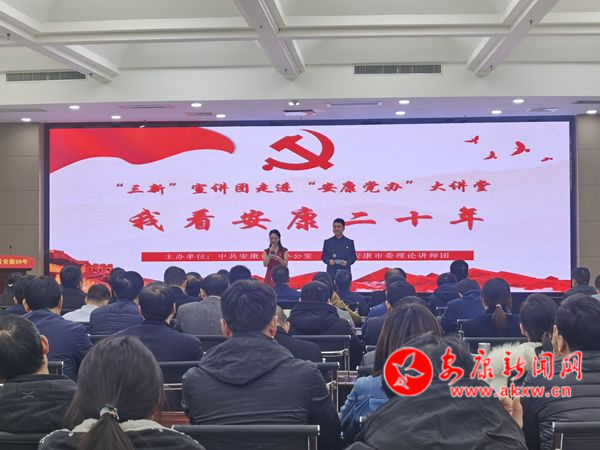 秉持有观点的表述、有态度的声音,以“新思想 新青年 新安康”为内涵的“三新”宣讲团,自2020年4月24日在安康高新区扶贫空间首秀后,就踏上了精彩的旅程。当年7月,全省首个原创电视理论宣讲栏目《“三新”开讲》在安康电视台正式开播。2023年10月,《理“响”安康》全新上线。三年来,共录制宣讲微视频节目130余期,受众超400万人次。