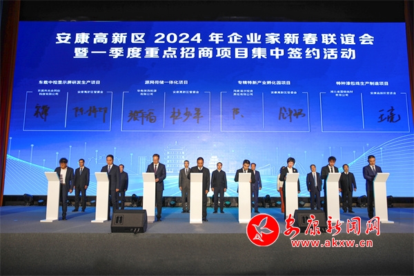 本网讯(记者 吴单 见习记者 吴隽雅)1月19日,安康高新区举行2024年企业家新春联谊会暨一季度重点招商项目集中签约活动。市委副书记、市长王浩出席并见证签约,市委常委、安康高新区党工委书记罗武侠出席并致辞。