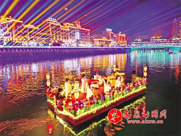 △ “岚河夜画”花船演艺