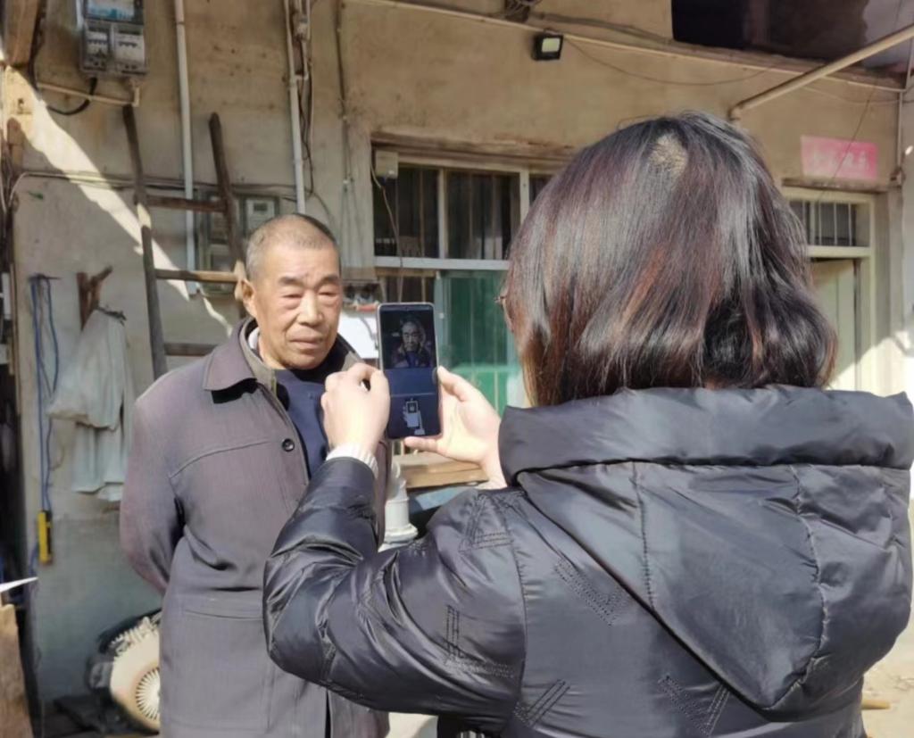 五爱村干部上门为高龄老人做生存认证。新华社记者 李亚楠摄