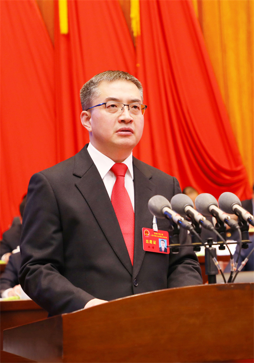 △ 市长王浩代表市人民政府作工作报告。记者 魏涛 摄