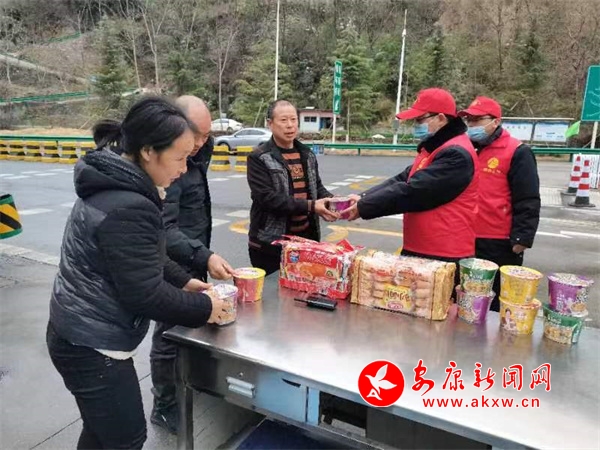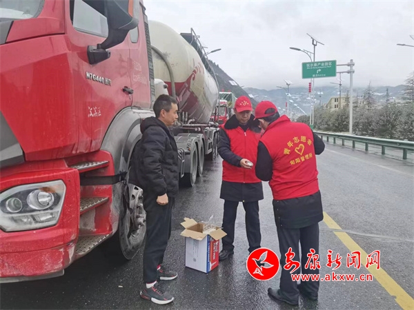 天寒地冻,暖心之举驱寒意。在旬阳,志愿者为滞留司机规划行车路线,送上热水、方便面、面包、奶茶等爱心餐食;在白河,志愿者为滞留司乘送去热姜汤以及馒头、鸡蛋等食物;在石泉,云雾山镇联合高速收费站为旅客准备暖心面条,收费站秒变爱心驿站……