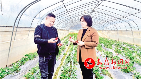 双乳镇党委书记柳杨(右)走进草莓园