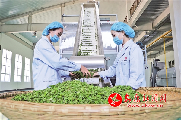 重视茶叶质量管控的同时,汉滨区还积极引导企业创新研发茶产品,进行深加工、延伸产业链、提升附加值。“我们每年3月10日左右开工,早春平均每天收到鲜叶800到1500斤,制出干茶200到300斤,春茶采收50余吨,产值可达1600万余元,带动1000多人通过采茶增收3000至5000元。”安康市汉滨区德润天然富硒农产品开发有限公司运营总监陈同磊说。2021年,德润公司投产了“年产400吨富硒茶清洁化生产线”项目,这是目前陕南较大容量的杀青生产线和炒干生产线之一,可同时加工富硒绿茶、红茶、白茶、黑毛茶等多品类茶,极大地丰富了安康富硒茶品种及市场,也使茶叶加工温度控制更加精准,整体口感进一步提升。