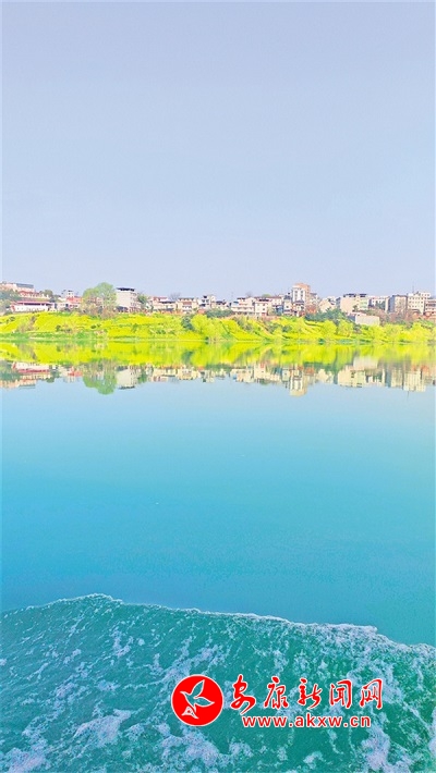 春分之际,汉江游船画舫从西城坊出发,途径关庙、早阳等镇,直抵本次航行的终点站——石梯镇。将近一个小时的航程中,两岸美景尽收眼底,金黄灿烂的油菜花铺陈在起伏的丘陵原野上,江岸杨柳依依、桃花盛开,民居与自然美景融为一体,倒映在碧绿的江面上,直教人看一眼便觉心旷神怡。