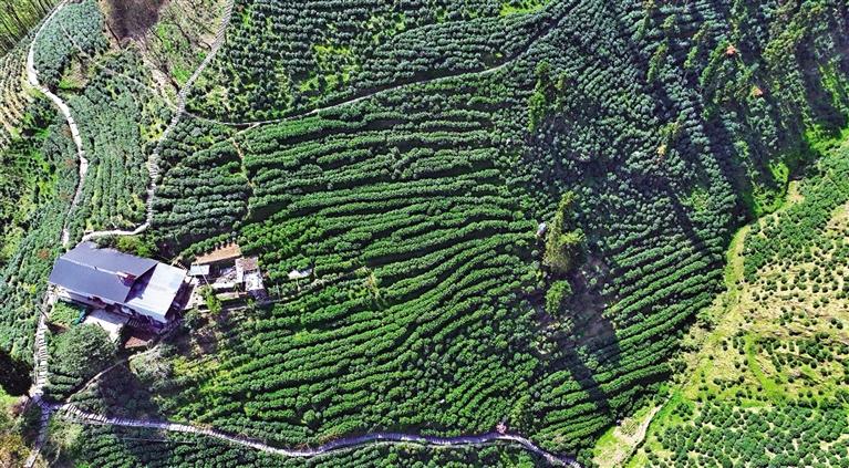3月27日航拍的安康市紫阳县焕古镇茶园。 陕西日报记者 田若楠摄
