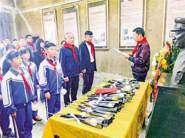 ▲ 4月1日,汉阴县蒲溪镇小学教育集团师生代表在杨弃将军故居开展主题党日活动。邓永新 摄
