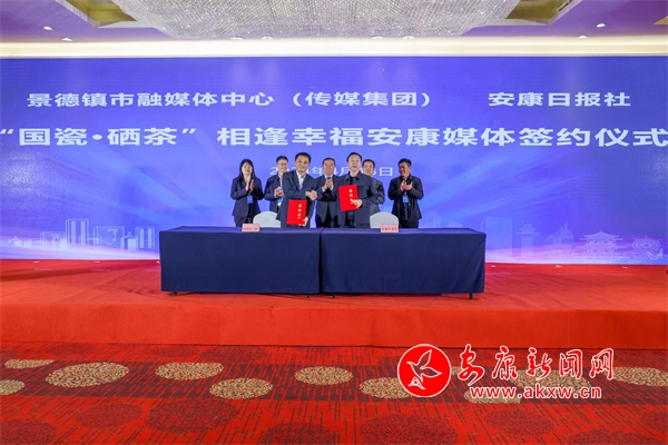 本网讯(记者 杨京保 翟本荣)4月18日,安康日报社与景德镇市融媒体中心(传媒集团)在中国丝路报盟“教育+研学”产业发展大会现场举行“国瓷·硒茶”相逢幸福安康媒体签约仪式。