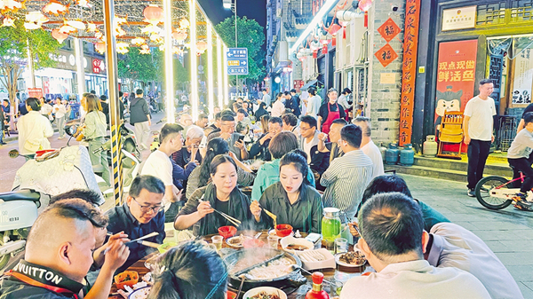 参赛者在石泉老街品尝特色美食