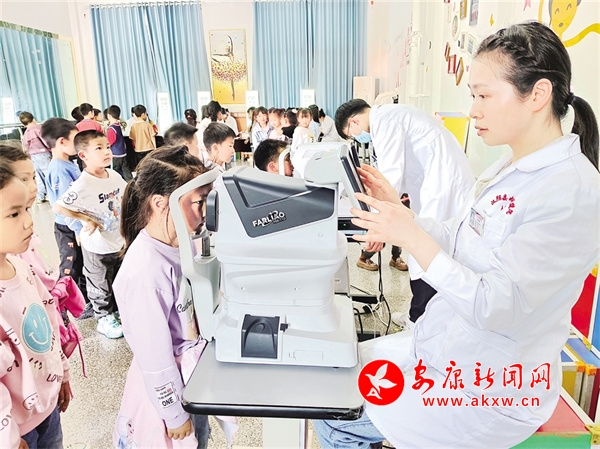 4月17日,汉阴县妇幼保健院到蒲溪镇小学教育集团开展学生视力检测。 邓永新 摄