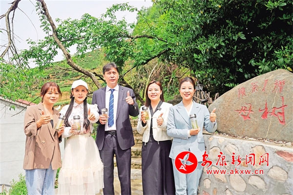 汉滨区区长吴大林(中)携网络达人为“陕茶一号”代言