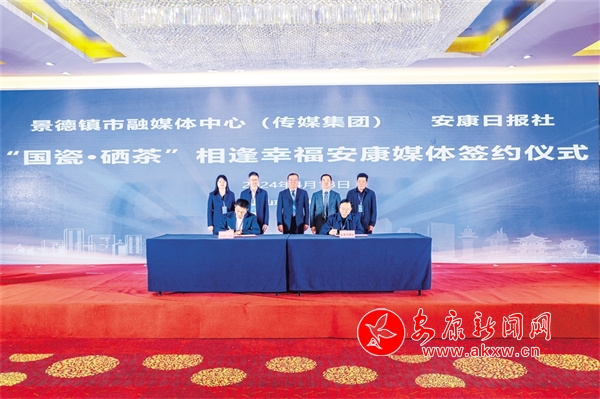 △安康日报社与景德镇市融媒体中心(传媒集团)举行“国瓷·硒茶”相逢幸福安康媒体签约仪式