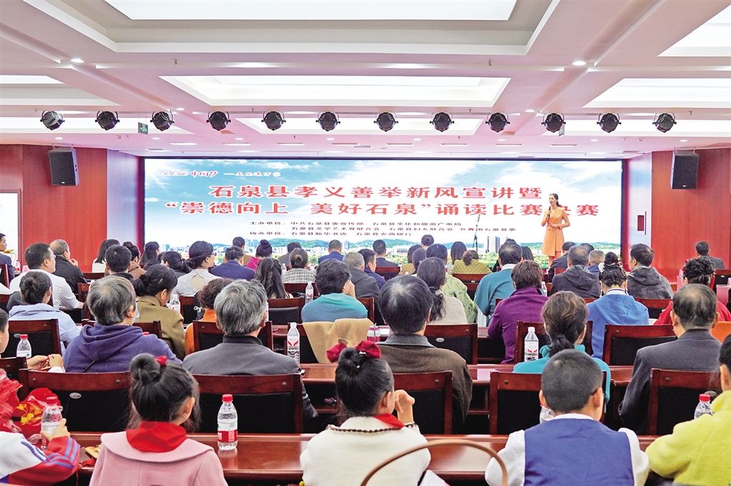 注重孝义精神传承,以“孝义新风进万家”为主题,深入开展金蚕精神宣讲、孝义典型“我推荐、我学习、我宣传”活动,邀请道德模范、身边好人、文化特派员、理论宣讲员、民风引导员深入镇村、社区、企事业单位开展孝义新风宣讲。今年还积极组织开展“孝义善举·孝行石泉”戏剧曲艺作品征集大赛和孝义新风主题征文及孝义新风主题宣讲比赛活动,及时启动石泉县第八届道德模范评选活动,常态推选宣传石泉好人。结合传统文化节日,策划开展“孝义善举我践行”主题活动,不断丰富孝义善举实践内容,推进尊老爱幼、睦邻友恭,乐于助人、重义守信,敬业奉献、报效祖国的孝义精神、家国情怀厚植群众心间。