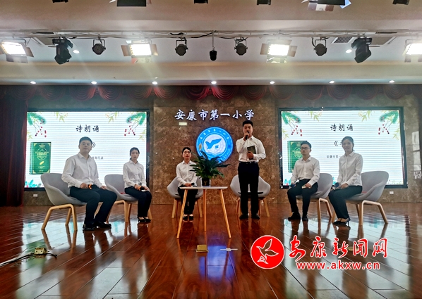 读书成果展示汇报环节,安康一小校长胡刚以《阅读“十个一” 幸福“百分百”》为题汇报学校书香校园建设成果,为师生们带来了精彩纷呈的经典诵读、读书沙龙、亲子诵读、课本剧表演、优秀教师阅读经验分享等展示。